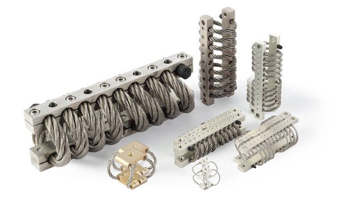 特殊設計的抗沖式鋼繩隔震器能根據客戶需求,提供更優異的性能和阻尼比。尤其適用于高承載能力要求,高沖擊應用情況,變形量最高可達70-80%,廣泛應用于民用和軍用設備領域。