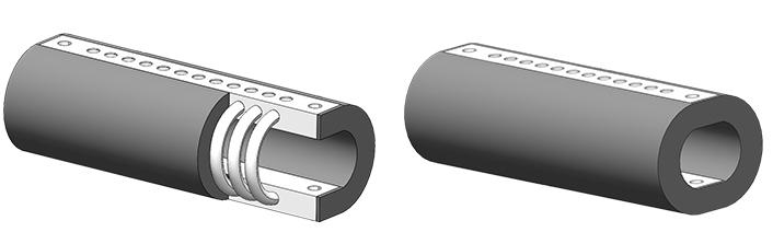 力科丹普公司研發生產的OVTN系列抗沖復合式隔振器,由鋼繩隔振器包覆橡膠或聚氨酯組成,兼具鋼繩隔振器和橡膠類隔振器的優點,主要性能特性: